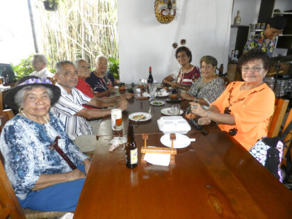 Casi reunión magisterial en El Jaguar: Graciela Guinto, Ignacio Chávez, Fernando Flores, Leonor Farfán, Bitia L. Flores Farfán, Teresa Avalos y Rosa Luz Flores Farfán