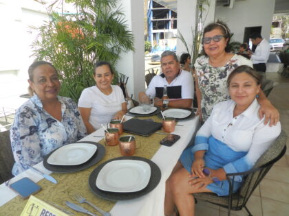 Flor de María Román celebrando su cumpleaños en compañía de Hilda Morales, Erika Hinojosa, Oscar Kamarit y Nora Hernández