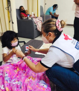 Las Damas Voluntarias de la Cruz Roja de Acapulco, que coordina la Dra. Claudia Hernández, realizan campaña permanente de apoyo a niños y adultos que padecen cáncer, así como a sus familiares, que están siendo atendidos en el Hospital de Cancerología.