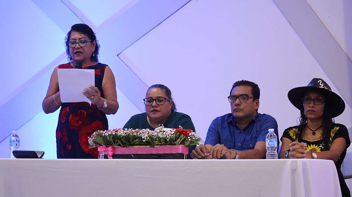 Por su parte, la poeta Yeesel Juárez Torres expresó que quienes mejor conocen sus límites son las mujeres y, para realzarlas, les dedicó su poema Hermoso diamante, acompañado de música de fondo y una tenue voz que fue seguida por el compás de las palmas de los presentes.