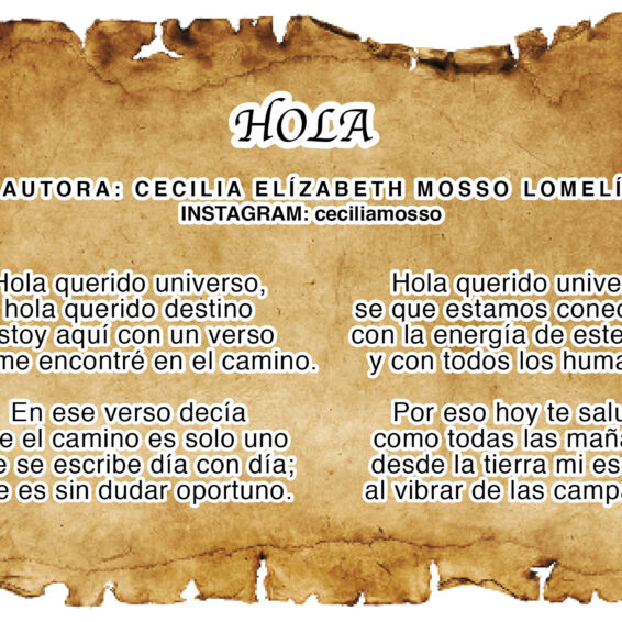 ColaboracionesHOLAAutora: Cecilia Elizabeth Mosso Lomelí Hola querido universo, hola querido destino estoy aquí con un verso que me encontré en...Leer más...