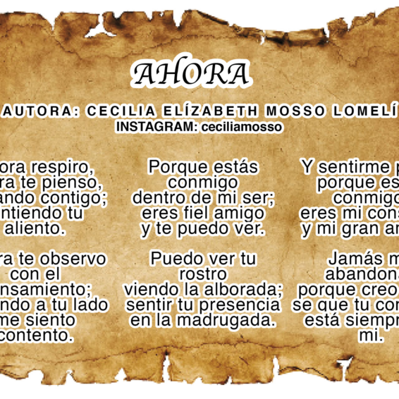 ColaboracionesAHORAAutora: Cecilia Elizabeth Mosso Lomelí Ahora respiro, ahora te pienso, soñando contigo; sintiendo tu aliento. Ahora te observo...Leer más...