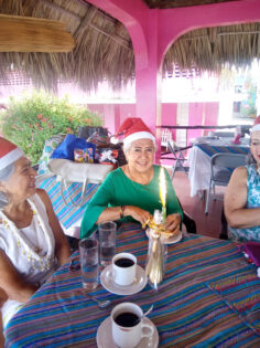 Al coincidir su cumpleaños con las festividades navideñas, sus amigas del grupo “Mujeres Ahora” celebraron a la doctora Bety Peralta con un rico desayuno, acompañado del intercambio de regalos, para tal actividad cada quien llevó un obsequio genérico, así que llegado el momento, se realizó un sorteo para intercambiar los regalos, entre sí.