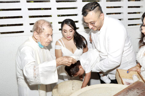 La ceremonia religiosa se llevó a cabo en la iglesia de San Cristóbal, donde vestidos de blanco Cristopher, papás y padrinos participaron de la ceremonia donde recibió su primer sacramento que lo convierte en parte de la iglesia y lo inicia a la fe católica.