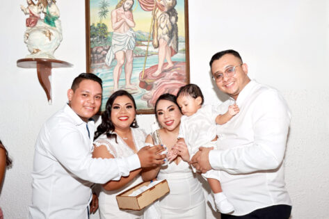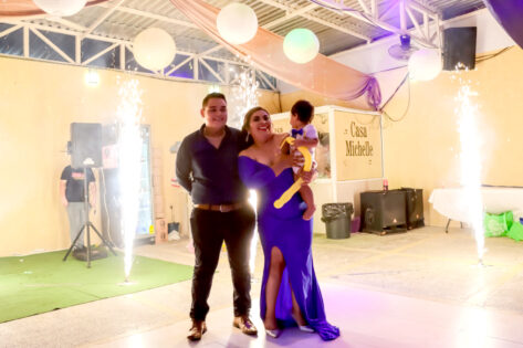 Luego se trasladaron a Casa Michelle donde se tenía preparado un festejo lleno de bellos detalles, para el príncipe Cristopher Daleth, vestido a la usanza, donde se creó un set para fotos del recuerdo y se partió su piñata conmemorativa del primer año.