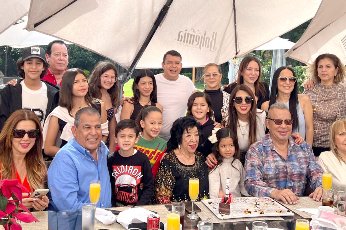 Al día siguiente, la fiesta del cumpleaños 90 de Chelo del Rayo, con toda la familia presente, fue una comida en el jardín La Ceiba Vistahermosa, donde la festejada pudo disfrutar de la gran convivencia con sus hijos, nueras, nietos y bisnietos, quienes le demostraban el gran cariño que le tienen.
