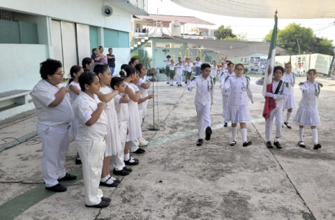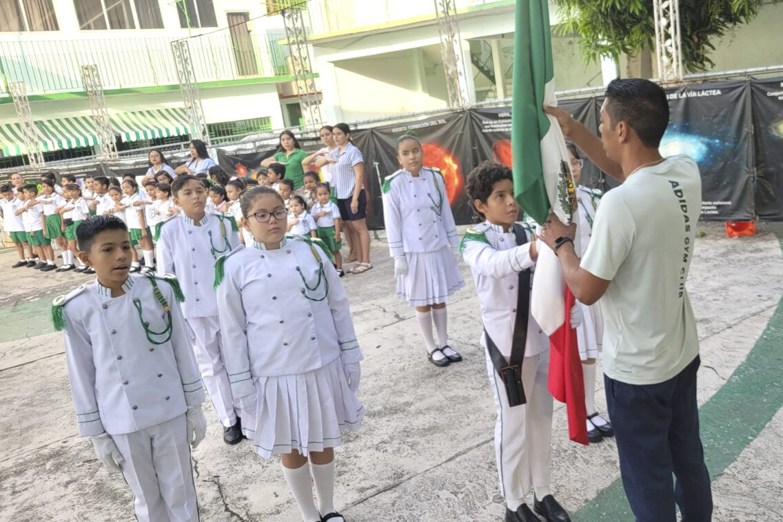 El pasado 09 d enero, con el regreso a clases, el grupo de 5to. Grado, a cargo de la maestra Irma Sosa llevó a cabo los Honores a nuestro Lábaro Patrio.