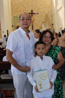 En días pasados en una emotiva ceremonia recibieron el sacramento de la Comunión Tamara Marquez Guzamán y Jesus Tadeo Quevedo Castro, estuvieron acompañados de sus padres y padrinos respectivos.