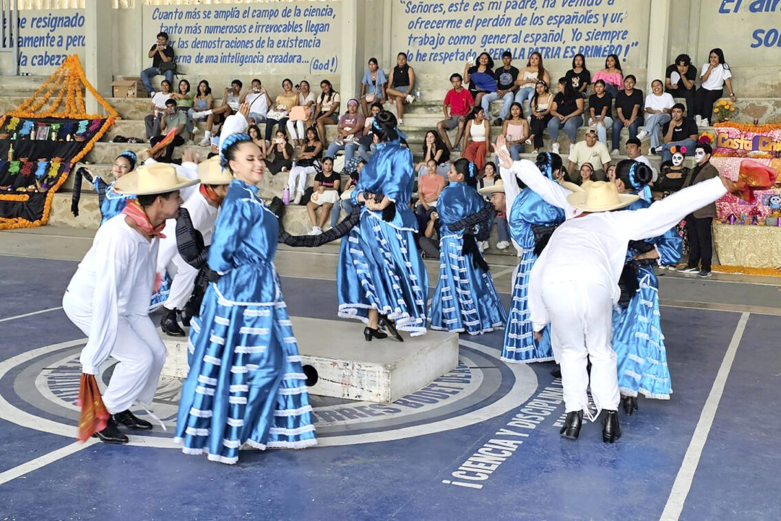 Con mucho colorido y folklore se llevó a cabo el pasado 30 de octubre la tradicional celebración de Día de Muertos en el Instituto de Estudios Superiores Jaime Torres Bodet, en la que con la participación de los estudiantes de las diferentes secciones se colocaron altares y ofrendas de las 7 regiones del estado de Guerrero, caracterizaciones y presentación de bailes regionales.