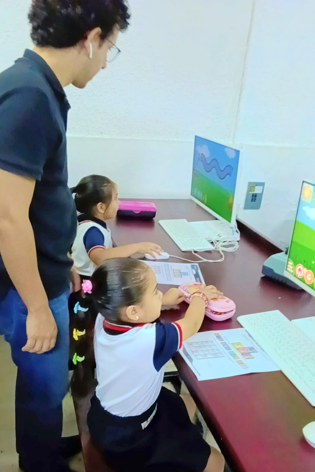 Como parte de sus Programas de Desarrollo Humano, desde preescolar los pequeños aprenden computación de forma interactiva y divertida, explorando cada parte de la computadora conociendo el teclado, descubriendo cada función de la computadora, así como la interacción con programas didácticos.