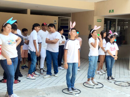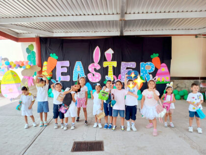 En el Plantel Ejido los peques de preescolar llevaron a cabo una serie de actividades como fue la parte de conocimiento sobre los motivos de la celebración del Happy Easter, realizaron dibujos y posteriormente salieron a buscar los huevitos llenos de confeti, para que al término jugaran y quebraran los cascarones de manera divertida.