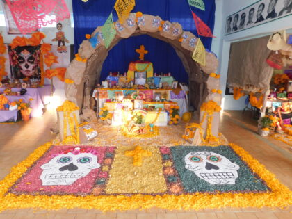 En el aula magna del Instituto México se montó la Exposición “Ofrendas de Día de Muertos” de las siete regiones del estado de Guerrero, a cargo de la Sociedad de Padres de Familia, quienes no escatimaron tiempo, creatividad y entusiasmo para brindarles a los asistentes una espectacular exposición de altares.
