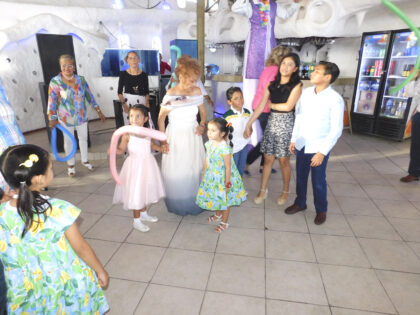 Las instalaciones del salón de fiestas La Casa Azul, que fue sede de la alegría y ambiente con el que celebraron a Irene Martínez, estaban debidamente decoradas para la celebración.