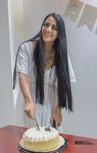 Rodeada de sus compañeros de trabajo, encabezados por el director general de RTG, Lic. Roberto Ramírez Bravo, es como iniciaron las celebraciones, ya que se realizó un convivio para los colaboradores que cumplen años en el mes de mayo. Más adelante, sus cercanos dispusieron una taquiza de guisados que culminó con la partida de pastel y la festejada apagando las velitas de su pastel de queso con fresas.