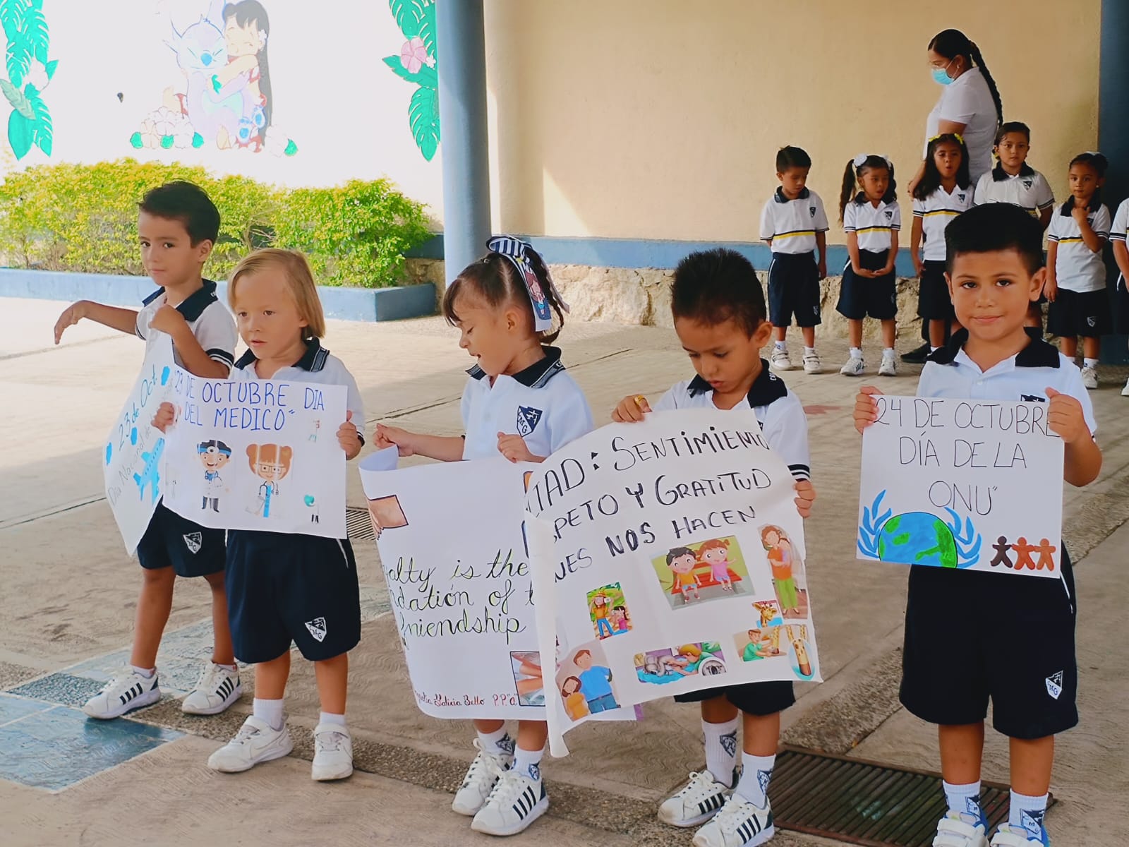 El pasado lunes 20 de octubre, la sección de preescolar del Colegio Mac Gregor Campus Ejido, conmemoró el Día de las Naciones Unidas con un brillante desfile de banderas de países integrantes de la ONU, previo a ello realizaron los Honores a la Bandera a cargo de los alumnos de Preprimaria A