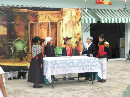 Con un excelente trabajo de dramatización del Grito de Dolores por parte de alumnos de tercer grado, el Instituto México conmemoró la Independencia de México el pasado viernes 13 de septiembre en los patios de la institución educativa, acompañado de un interesante programa de actividades que incluyó poesías, bailes folklóricos, canciones y una mañana patria con antojitos mexicanos y aguas frescas de sabores, para el deleite de los estudiantes de las secciones de preescolar y primaria.