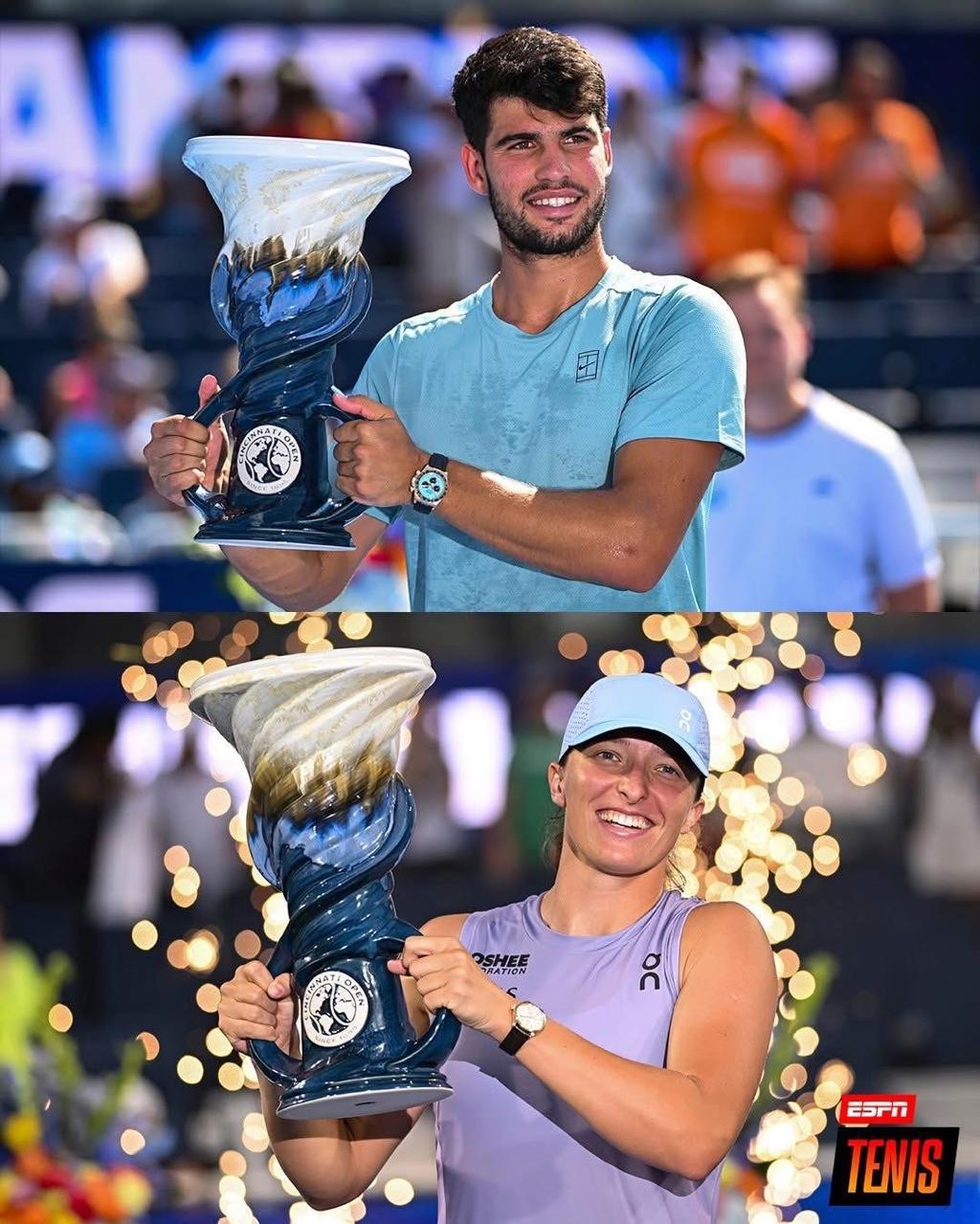 Carlos Alcaraz volvió a ganar en el abierto de Cincinnati y por las mujeres la polaca Iga Swiatek hizo que se repitiera del podio de Wimbledon, ahora ambos están listos para el USA open, que esta mañana dio inicio.