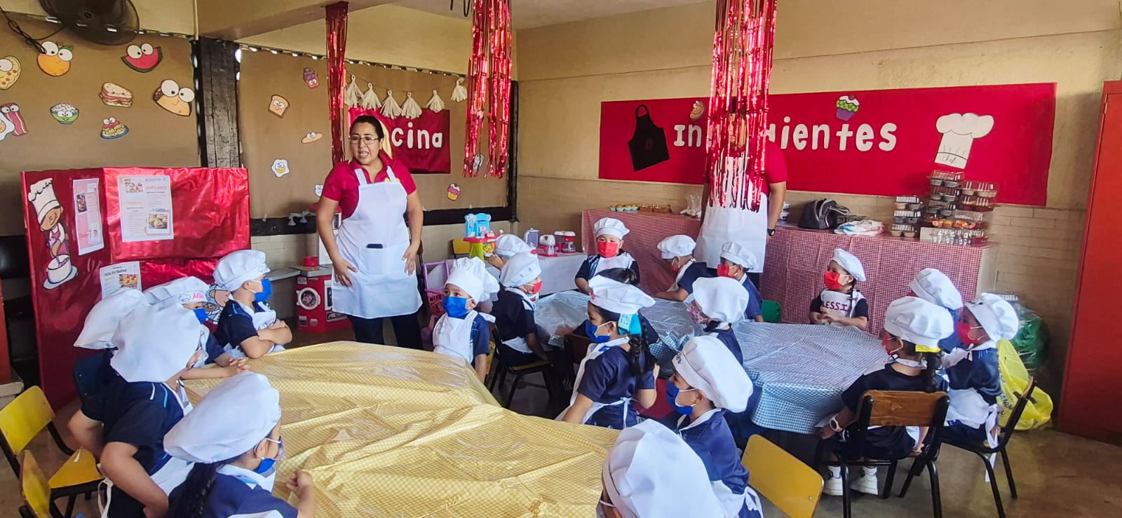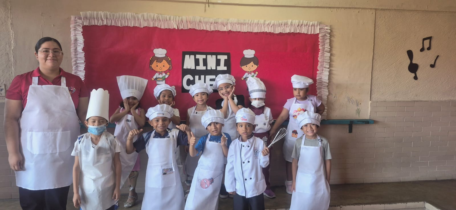 En días pasados, en preescolar del Colegio Mac Gregor Campus Ejido, de la que es coordinadora Miss Lissette Jiménez, se llevó a cabo la actividad Master Chefcitos, actividad super divertida y deliciosa, a través de la cual buscan reforzar entre sus alumnos la importancia de seguir indicaciones, identificar formas, tamaños, cantidades y medidas; así como estimular la motricidad fina, la creatividad y el desarrollo sensorial.