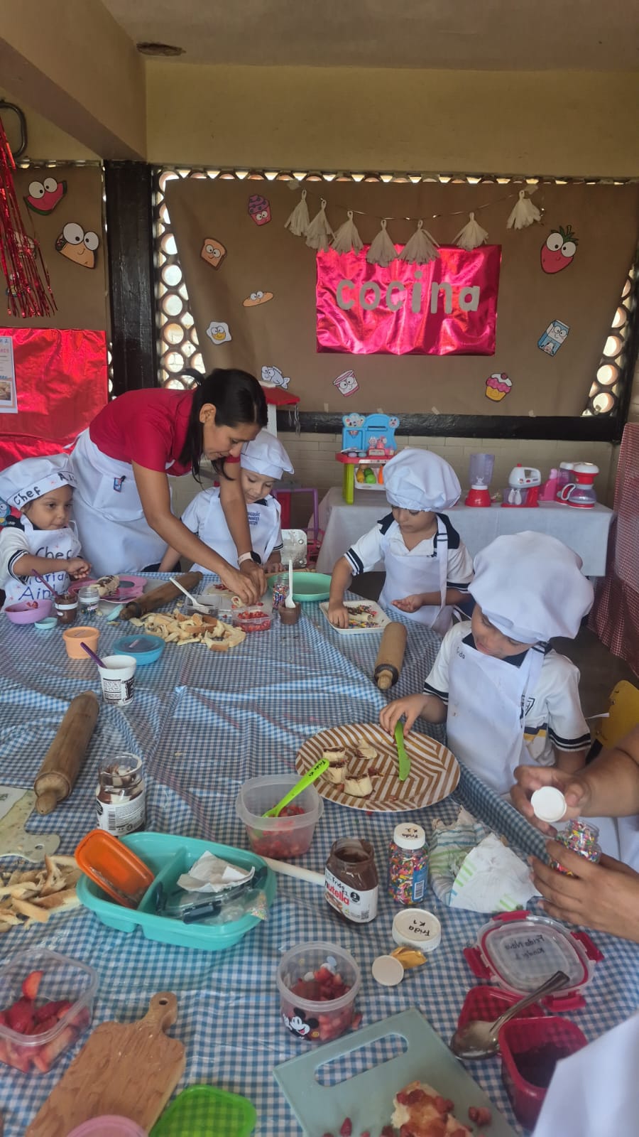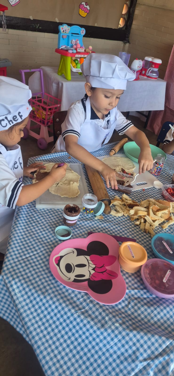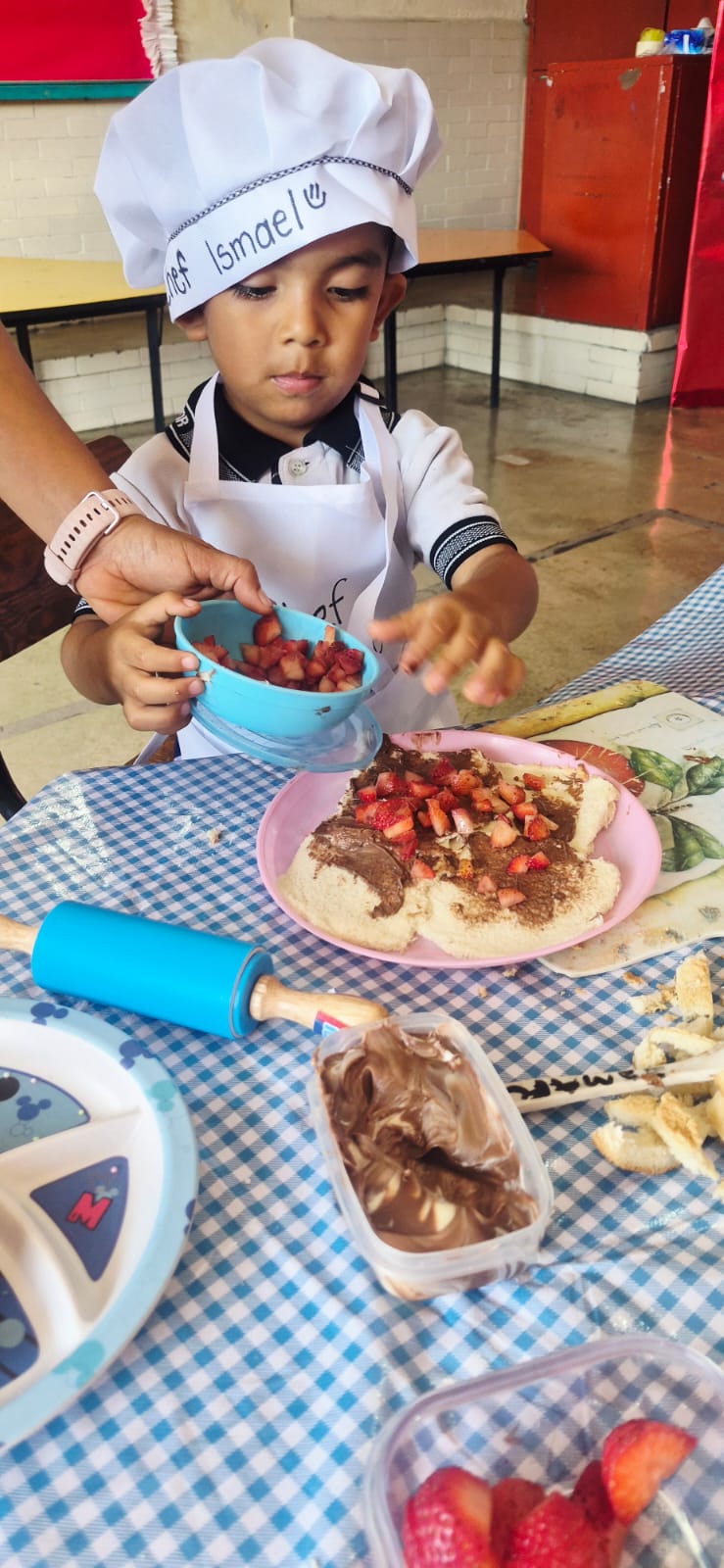Los peques del Kinder 1 prepararon un riquísimo sushi dulce, relleno de frutas y chocolates, mientras los alumnos de Kínder 2 decoraron cupcakes de chocolate y vainilla; fue una actividad en la que mientras aprendían se divertían.