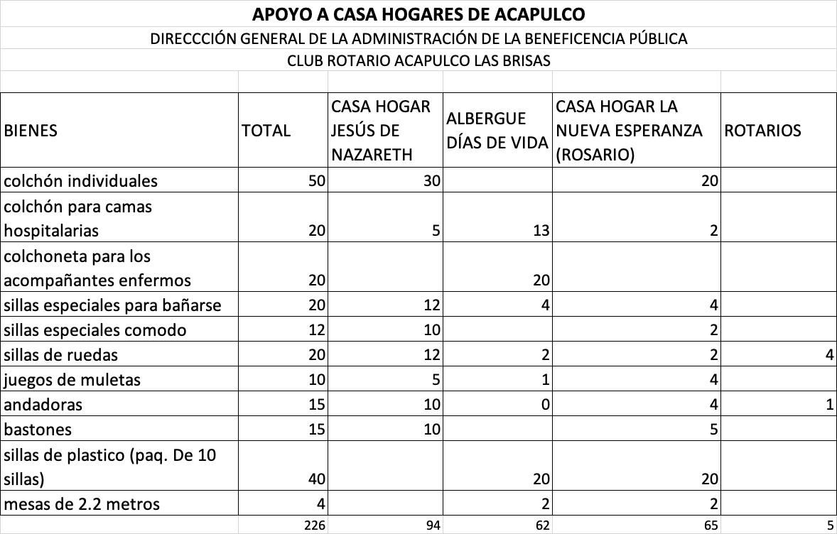 El pasado sábado 20 de diciembre, el Club Rotarios Las Brisas Acapulco en coordinación con la Beneficencia Pública llevó a cabo la entrega de bienes a Albergues y Casas Hogares de Acapulco bajo el lema: Una Caricia Vale Más que 1000 Palabras.