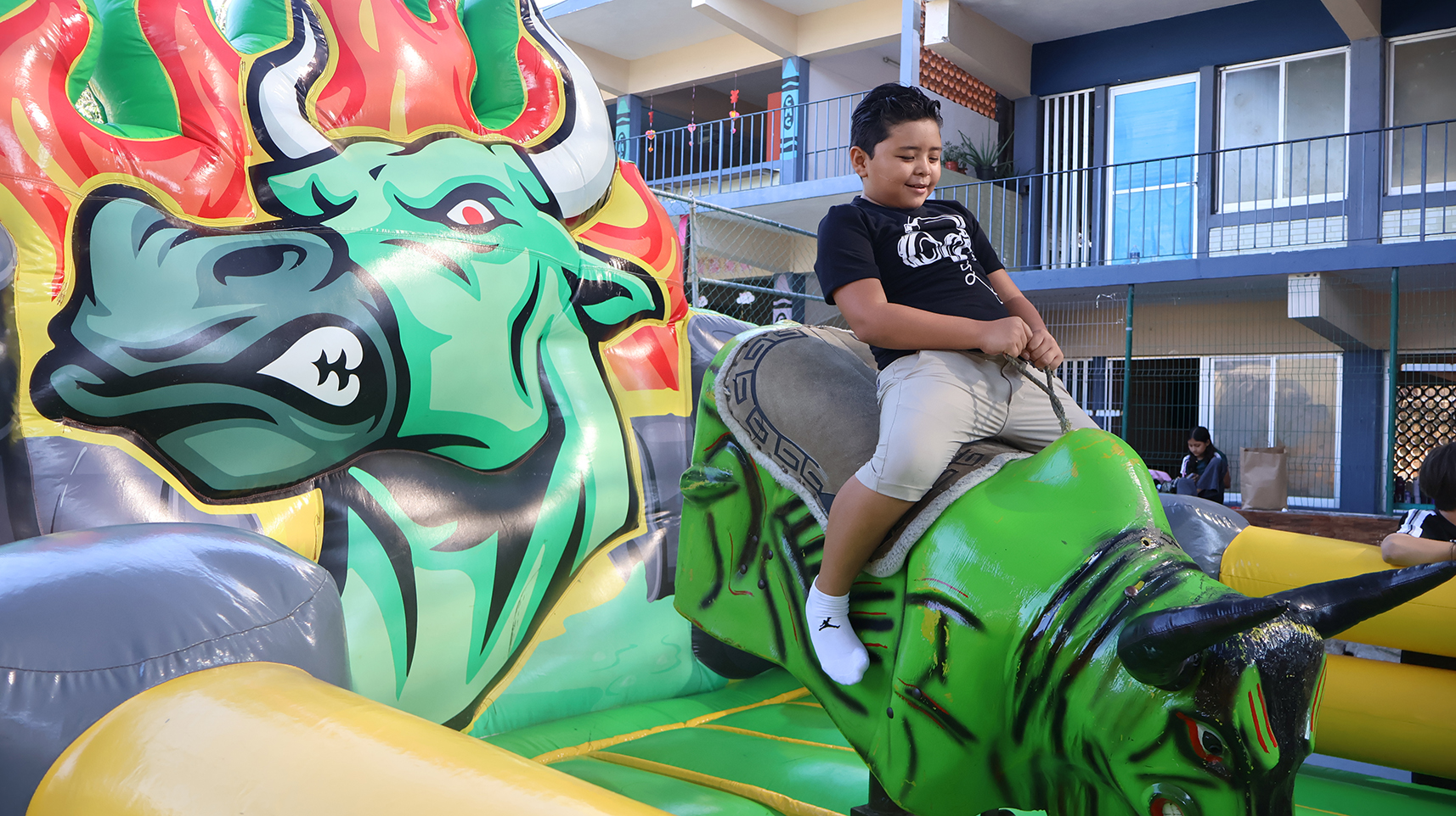 Los más grandes se les veía en los puestos de comida: wafles, pizzas, tacos, checos, dorilocos… pero lo más impresionante eran sus ganas por domar el toro mecánico, que tiraba a todo aquel que se atreviera a subirse.