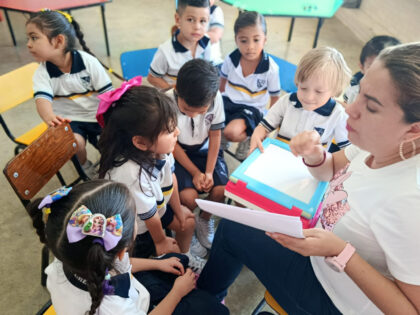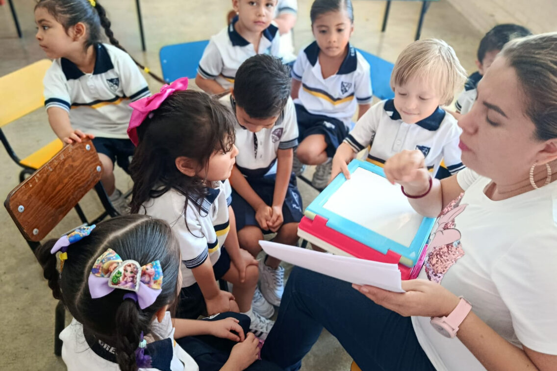 En kínder 2A la mamá de Ivana en amena charla les contó “La tortuga Manuelita”, que es sobre la importancia del manejo de emociones y cómo ayudar a controlar el enojo. Por su parte mami de Santiago compartió el cuento “El diente de Timony”, que destaca la importancia de las frases mágicas: por favor y gracias.