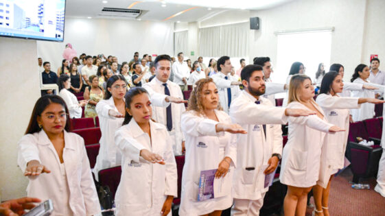La ceremonia también contó con la participación del Dr. Armando Pablo Flores Rivera, coordinador de la Licenciatura en, quien dio lectura a la promesa médica.