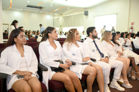 Durante su intervención, el Mtro. Nieto Quezada, destacó la dedicación y el esfuerzo de cada estudiante, enfatizando que han adquirido no sólo conocimientos académicos sólidos sino también habilidades y valores que los preparan de manera integral para afrontar con éxito el desafiante período del Internado de Pregrado. “El compromiso de la universidad con la excelencia académica y la formación integral se refleja en la preparación excepcional de estos graduandos, quienes, gracias a su dedicación y al respaldo constante de la institución, están listos para emprender con confianza esta etapa crucial de su formación profesional”.