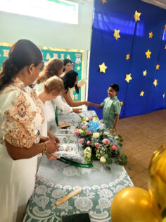 La Miss Karen Arizmendi, profesora del grupo de Preescolar estuvo al pendiente de cada uno de los actos y detalles, para que tanto los papás como los alumnos tuvieron una memorable ceremonia de clausura, lo cual felizmente se logró
