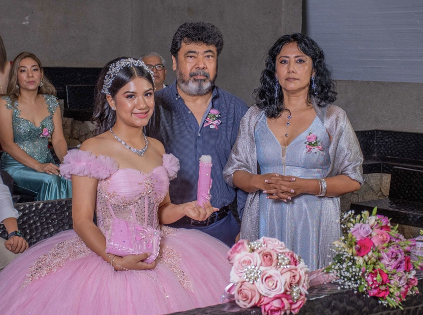 La belleza y elegancia de la quinceañera Krissia Irene irradiaban en su vestido de princesa, mientras que su sonrisa iluminaba el altar. La ceremonia fue emotiva y llena de significado, con la presencia de sus padrinos de velación, Prometeo Hernández Zamora y Andrea Aguirre Salgado, quienes la acompañaron en este momento tan especial, estando presente también la orgullosa abuelita Irene Martínez Abarca.