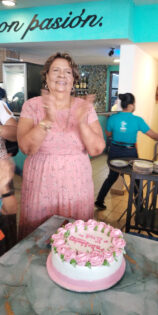 Enedina recorrió las mesas obsequiando un detalle en agradecimiento por su asistencia y posó para la foto con los asistentes, reiterándoles sentirse muy feliz por el festejo y por cumplir un año más de vida en compañía de sus seres queridos.