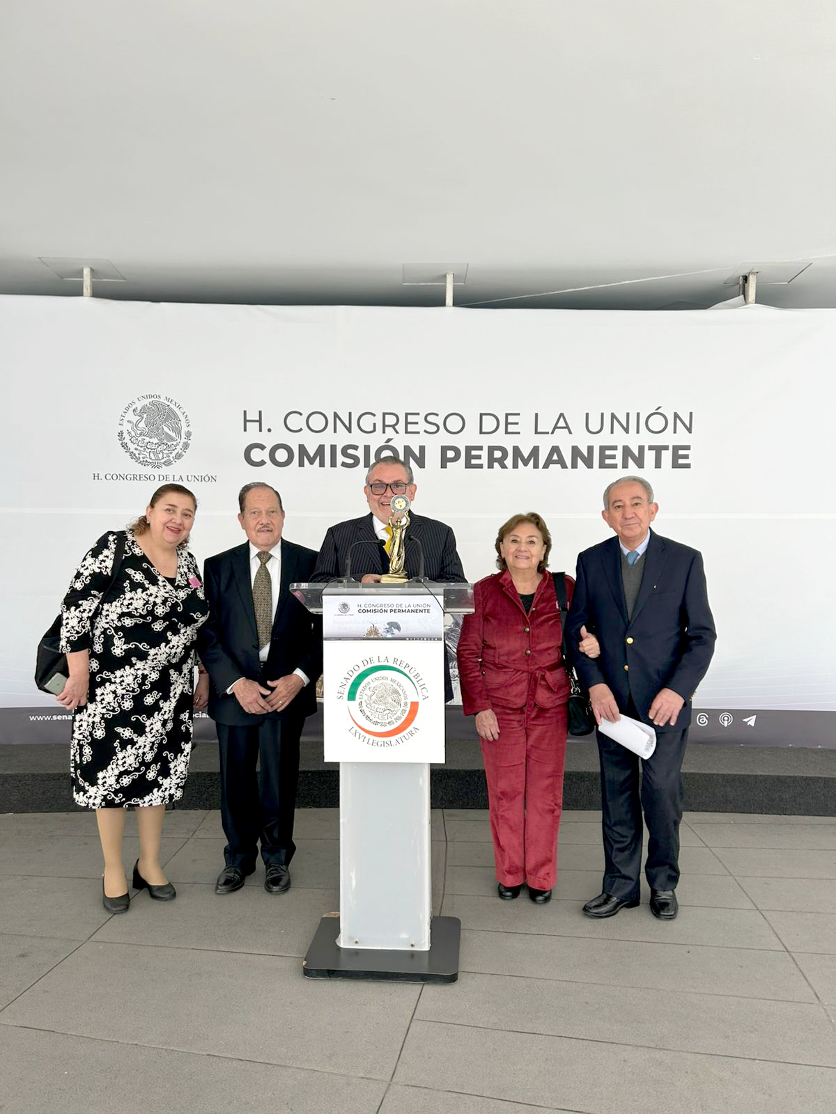Para ese momento tan especial de la entrega del Reconocimiento Internacional al Dr. Mario Mendoza Castañeda por parte del presidente de la FIA Mtro. Francisco Morales, acompañaron al homenajeado Esperanza Mendoza Castañeda y Jesús Bejar Vázquez, así como Rosa María Mendoza Castañeda y Francisco Allende Morales.