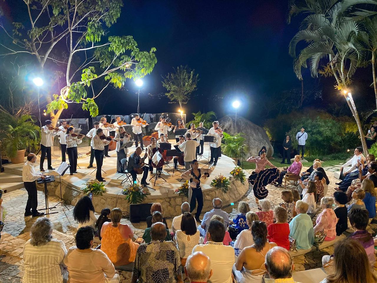 La Sra. Kay Mendieta, cofundadora y la Sra. Karina Adame, Directora del Jardín Botánico, fueron las anfitrionas de esta bella gala musical que tuvo una gran convocatoria, al llenar completamente el Anfiteatro del Jardín Botánico, agradecieron a la Orquesta Filarmónica de Acapulco por sumarse a dicho proyecto de conservación, que desde hace 24 años protege la flora nativa del Puerto, así como a los asistentes que se solidarizan con loable labor.