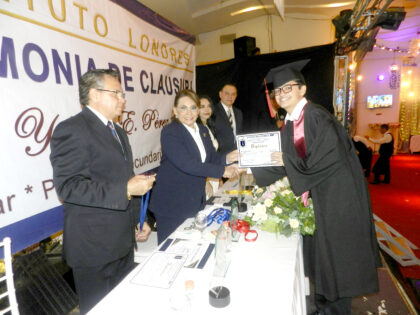 Un momento emocionante fue la entrega del Reconocimiento al Hijo (a) Predilecto (a) a aquellos alumnos que demostraron su fidelidad al Instituto Londres a lo largo de 15 y 12 años de formación académica de excelencia continua:
