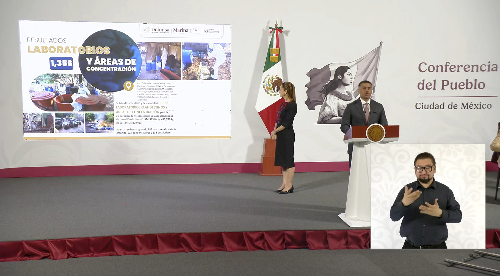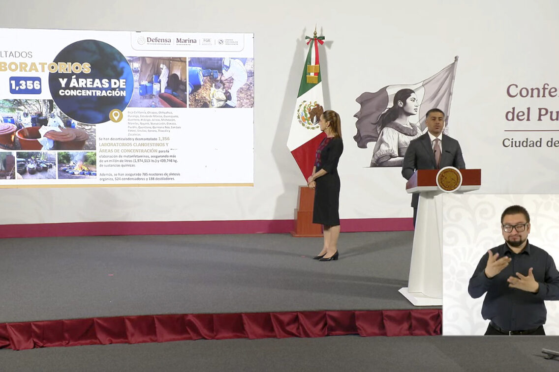 En cifras acumuladas del 1 de octubre de 2018 al 25 de agosto de este año, el Gabinete de Seguridad reporta más de 30 mil 755 detenidos, 15 mil 496 armas de fuego aseguradas, 239 toneladas de drogas decomisadas y la inhabilitación de mil 356 laboratorios de drogas.