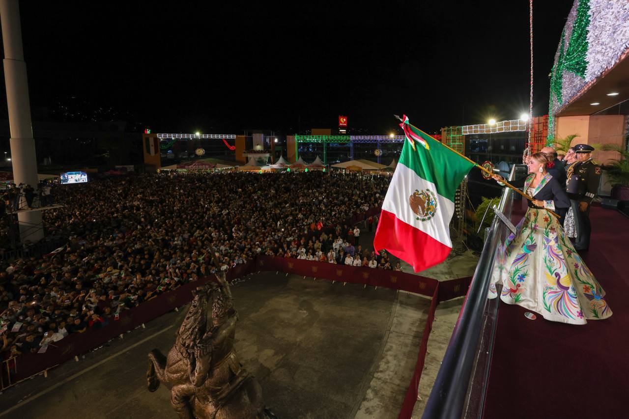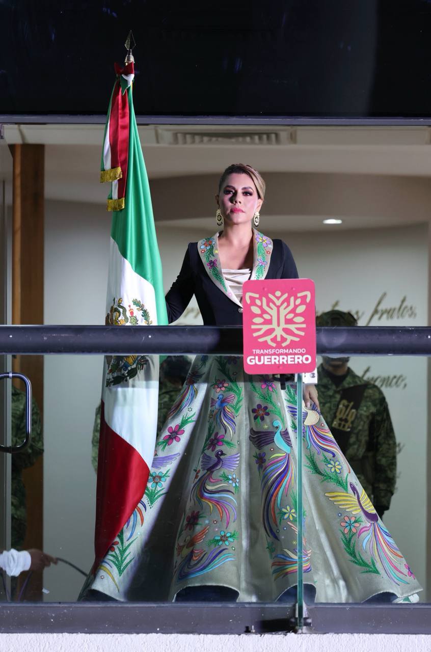 Desde el balcón central del Palacio de Gobierno, acompañada por mandos militares y navales, así como de los representantes del Poder Judicial y Legislativo, además del alcalde de Chilpancingo, Gustavo Alarcón Herrera, la mandataria estatal encabezó la tradicional ceremonia del Grito de Independencia, en un ambiente emotivo de patriotismo y libertad.