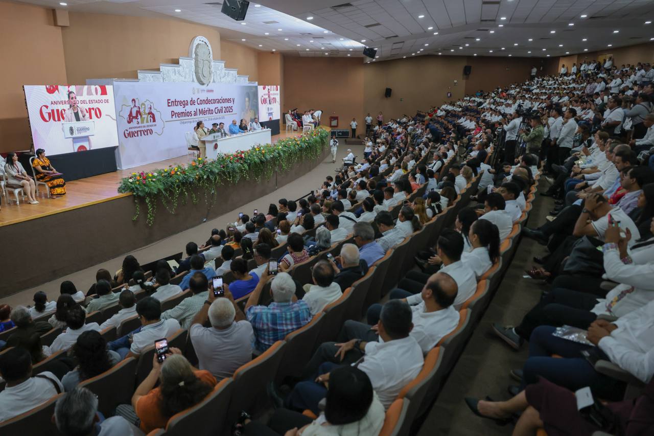 Durante el evento, celebrado en el Auditorio “José Joaquín de Herrera”, la mandataria estatal destacó que la historia de Guerrero está estrechamente ligada a la conformación de la República Mexicana. En este contexto, subrayó la importancia de rendir homenaje a quienes han contribuido al progreso del estado a través de su trabajo y compromiso social.