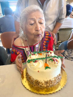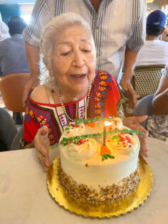 En días pasados, rodeada de sus seres queridos, le festejaron su cumpleaños 89 a María Amparo Talavera Navarrete. Estuvo felizmente acompañada por su hijo José Luis Basilio Talavera, sus nietos Amaranta Basilio, Hiram Basilio, su sobrina Elizabeth Talavera y su nuera María Mercedes Díaz, quienes le hicieron pasar un bonito festejo en el que no podía faltar el pastel de cumpleaños, al que muy alegre María Amparo le apagó la velita, no sin antes pedir un deseo.