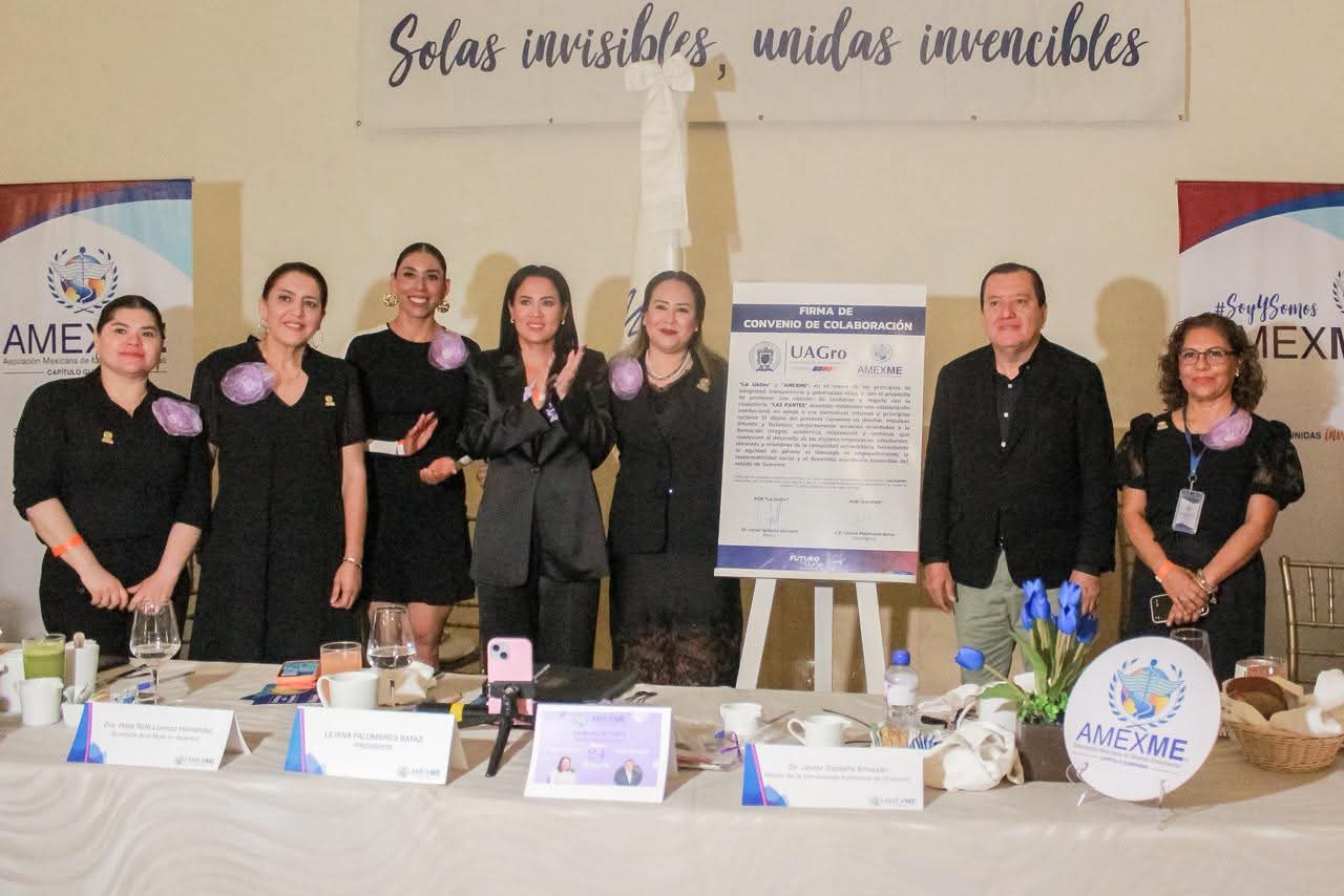 En el marco del Día Internacional de la Mujer, la Asociación Mexicana de Mujeres Empresarias Capítulo Guerrero (AMEXME Guerrero), llevó a cabo su sesión correspondiente del mes de marzo, donde estuvieron como invitados especiales, la Secretaria de la Mujer en Guerrero, Hilda Ruth Lorenzo Hernández; y el Rector de la Universidad autónoma de Guerrero (UAGro) Javier Saldaña Almazán; con quien se firmó un importante convenio de colaboración, con el cual se fortalecen las alianzas con las asociadas de este grupo empresarial.