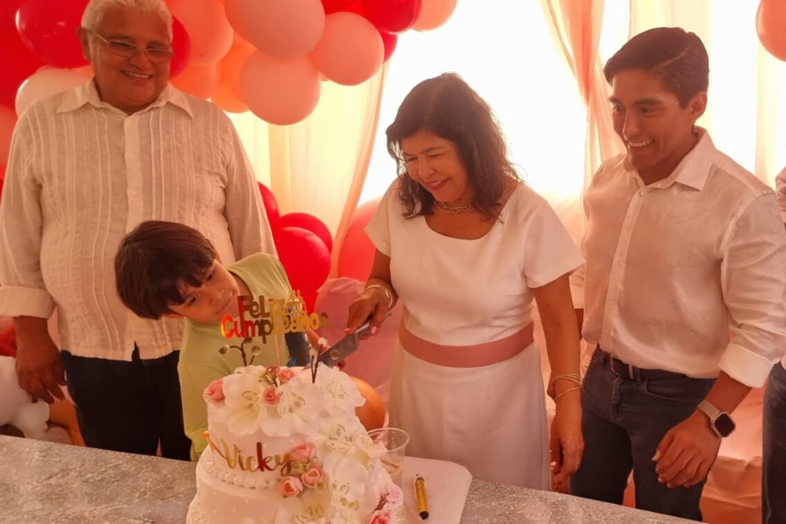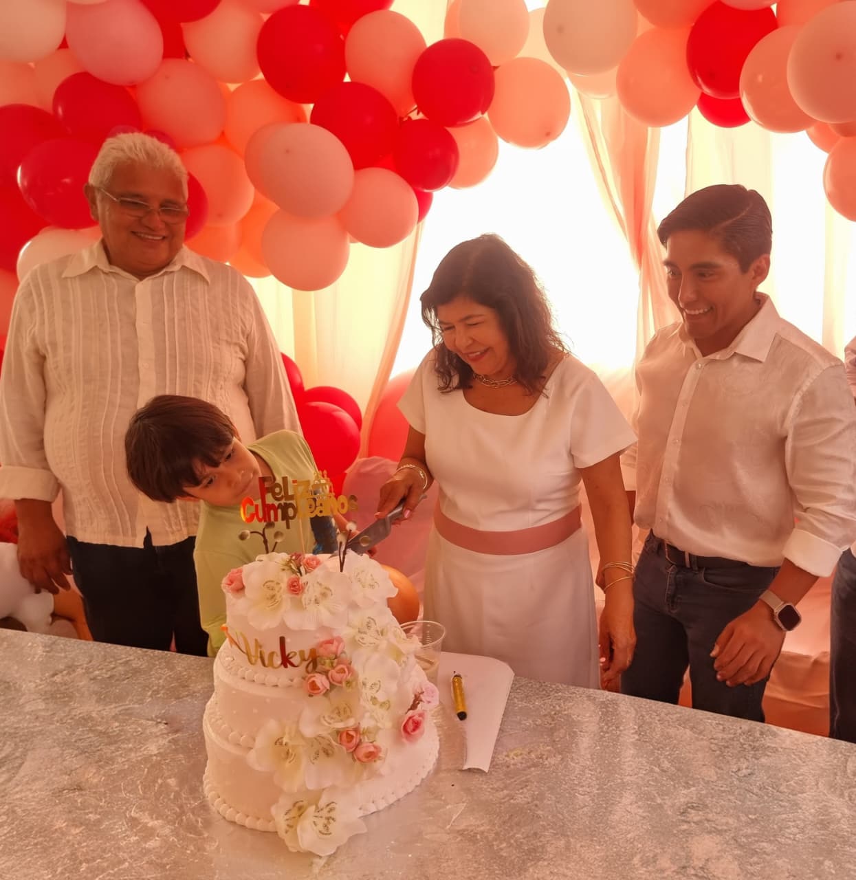 A Vicky, quien estuvo acompañada de su esposo Roy, le cantaron las mañanitas, dieron bonitos regalos, pero sobre todo recibió el amor y cariño de sus seres queridos, quienes le demostraron su afecto; por supuesto, se partió el infaltable pastel de cumpleaños, al que la festejada apagó la velita, no sin antes pedir un deseo.