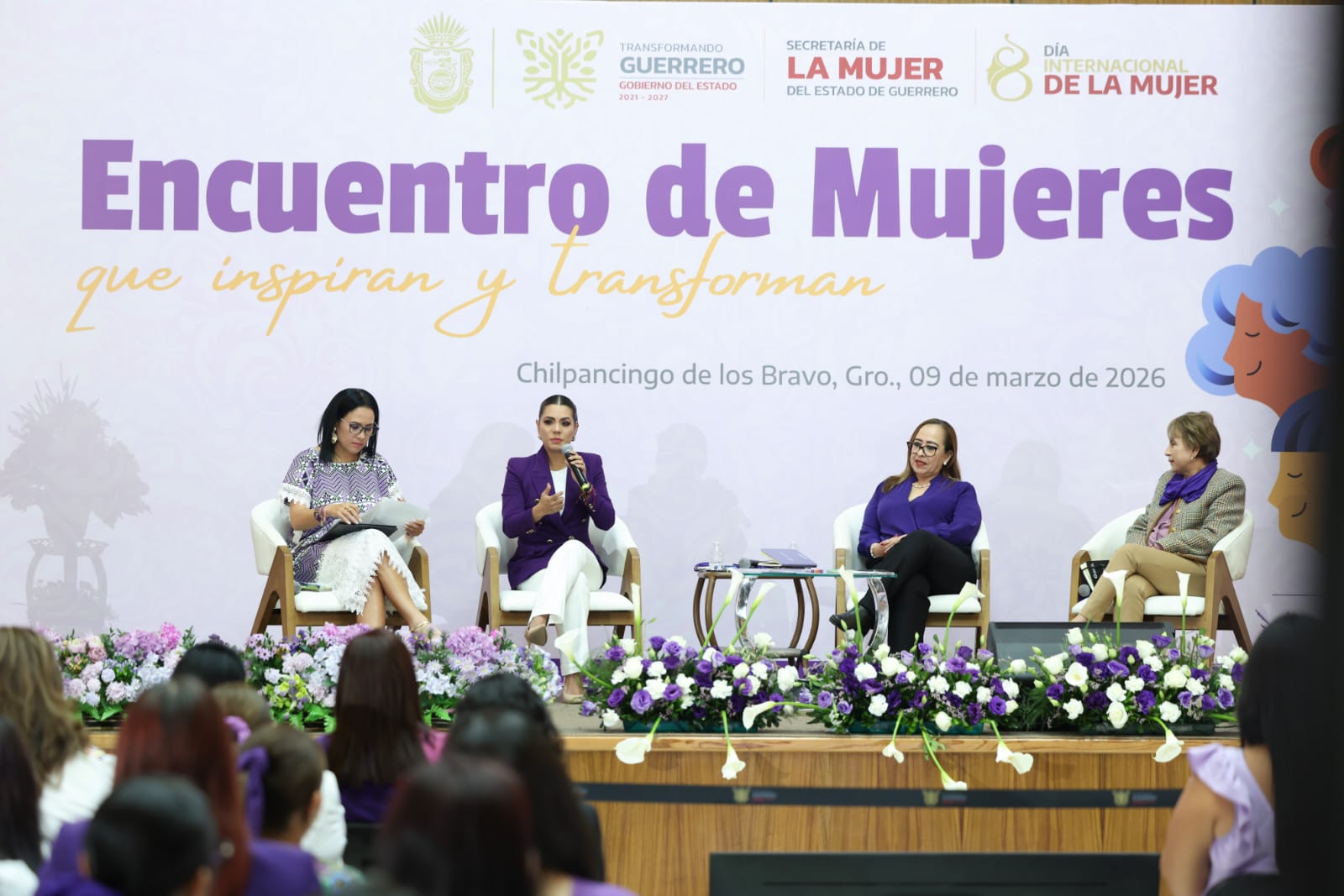 Chilpancingo, Gro., 9 de marzo de 2026. — “Vamos a seguir luchando por abrir el camino para todas las niñas y las jóvenes que vienen detrás de nosotras; el motor de las mujeres es imparable”, afirmó la gobernadora Evelyn Salgado Pineda al participar en el conversatorio “Encuentro de mujeres que inspiran y transforman”, en el marco del Día Internacional de la Mujer, donde reafirmó su compromiso con la igualdad sustantiva y la protección de los derechos de todas las guerrerenses.