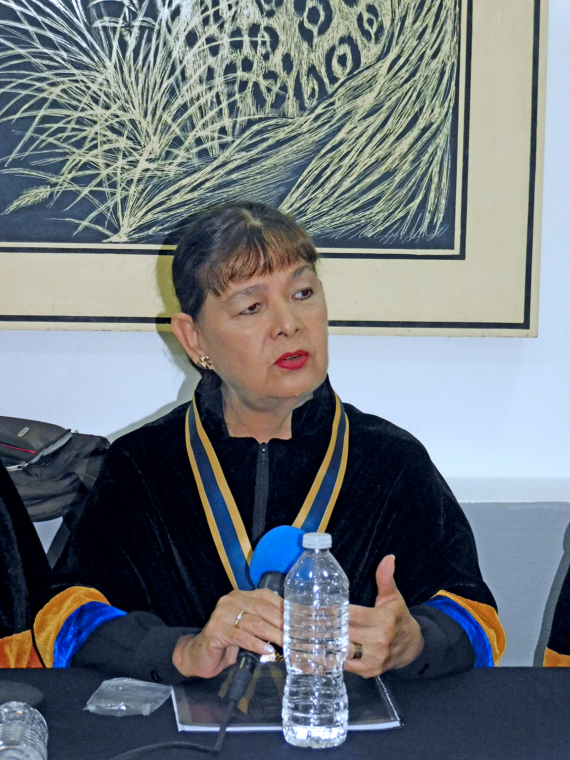 El Dr. David Cienfuegos Salgado, presidente de la ANHG Guerrero, dio respuesta al discurso de Ma. del Carmen, por su parte la Dra. Adriana Sánchez Díaz, Vicepresidenta de ANHG Guerrero le dio el mensaje de bienvenida y la Mtra. Themis Mendoza Arizmendi le colocó las insignias y muceta, con lo cual oficialmente se da su ingreso con el carácter de Académica.