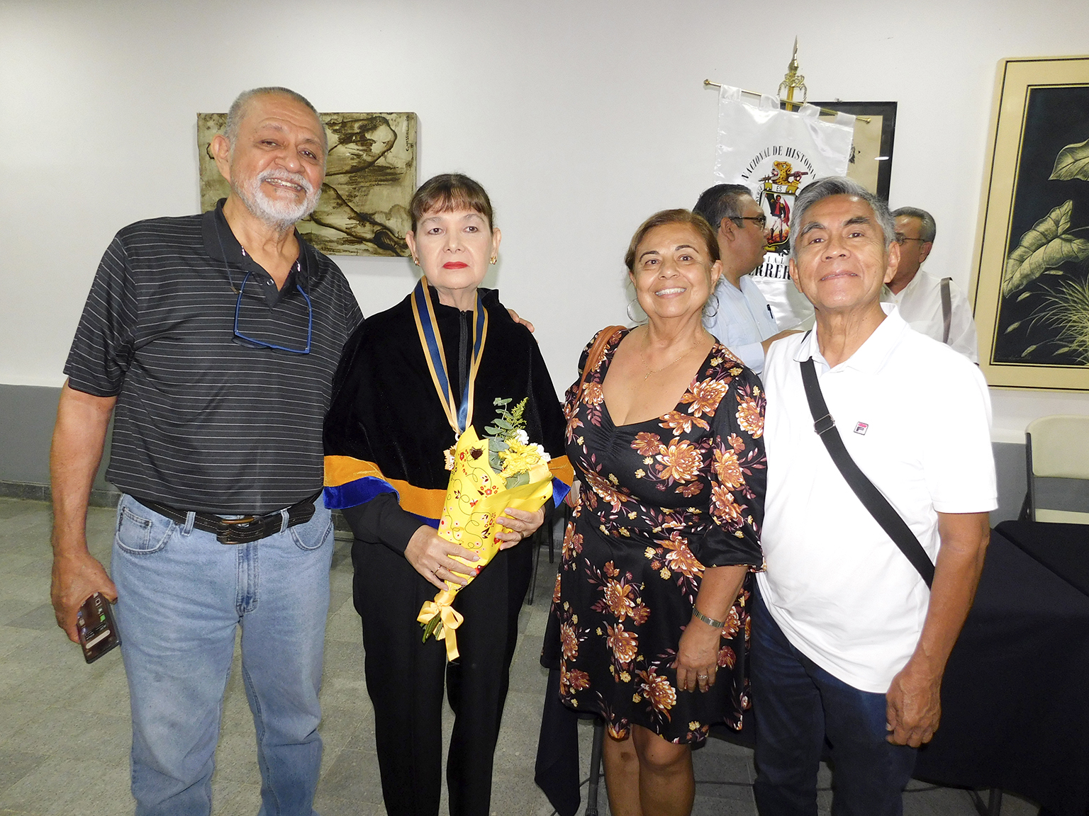Así como también, siempre apoyándola, César Santes esposo de la ahora académica de la ANHG Filial Guerrero, Ma. del Carmen Quevedo Acosta, quien fue felicitada también por familiares y amistades que la acompañaron en tan importante logro profesional.