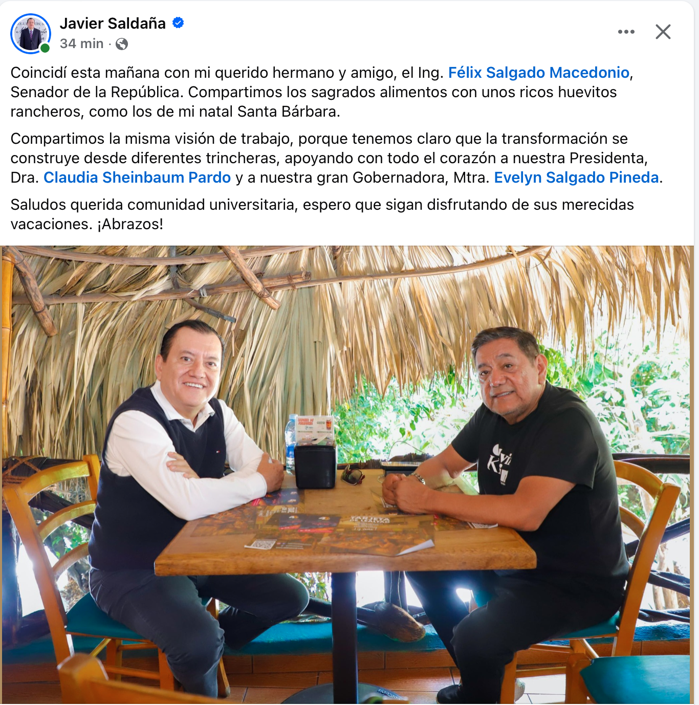 *Aunque más rápido que el Rayo McQueen de Cars, el Rector Saldaña se curó en salud y el viernes 10 de abril, dos días después, subió una foto desayunando “huevitos rancheros” con el senador Félix Salgado. ¿Ya ven? Como les hemos dicho, traigan su más cómoda silla y unas palomitas para disfrutar de lo que es ya la lucha por el poder para el 2027.