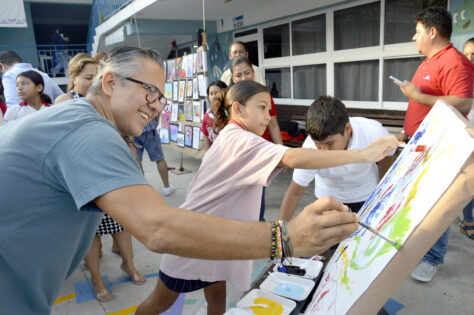 La Expo Artes Visuales e Interactiva de Elementos Plásticos fue un éxito rotundo, con una nutrida asistencia de familias y estudiantes. El evento se llevó a cabo en el patio de la escuela, donde los estudiantes de preescolar y primaria exhibieron sus obras de arte, creadas con pinturas, lienzos y materiales variados. El ambiente fue de integración familiar e interactivo, con padres y madres participando activamente en la creación de arte junto a sus hijos.