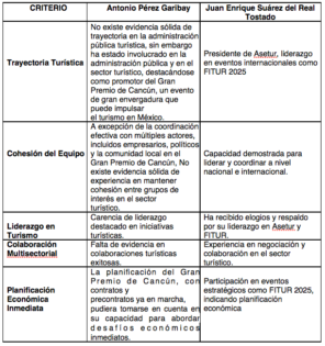 Luego entonces aplicando “Las llaves de la SECTUR” podemos proceder a evaluar a los dos personajes que hasta el momento se mencionan para tal designación: Antonio Pérez Garibay y Juan Enrique Suárez del Real Tostado, obteniendo los siguientes resultados: