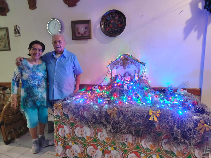 Lourdes y Armando Funes con el bien elaborado Nacimiento del Niño Jesús