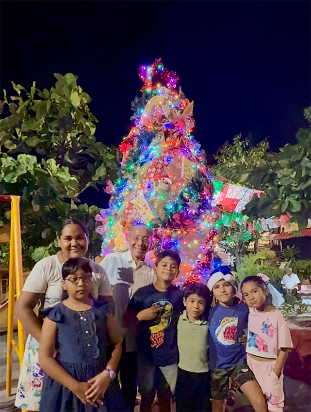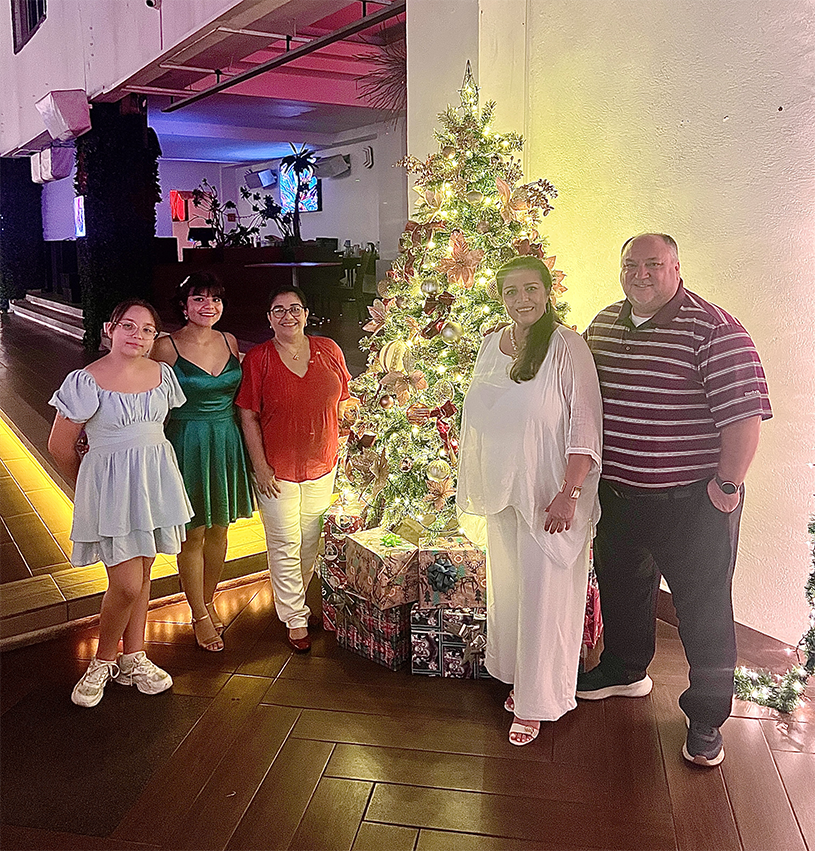 Brenda Taylor, Marc Taylor, Erika, Pao y Jana Pintos junto a su árbol Navideño
