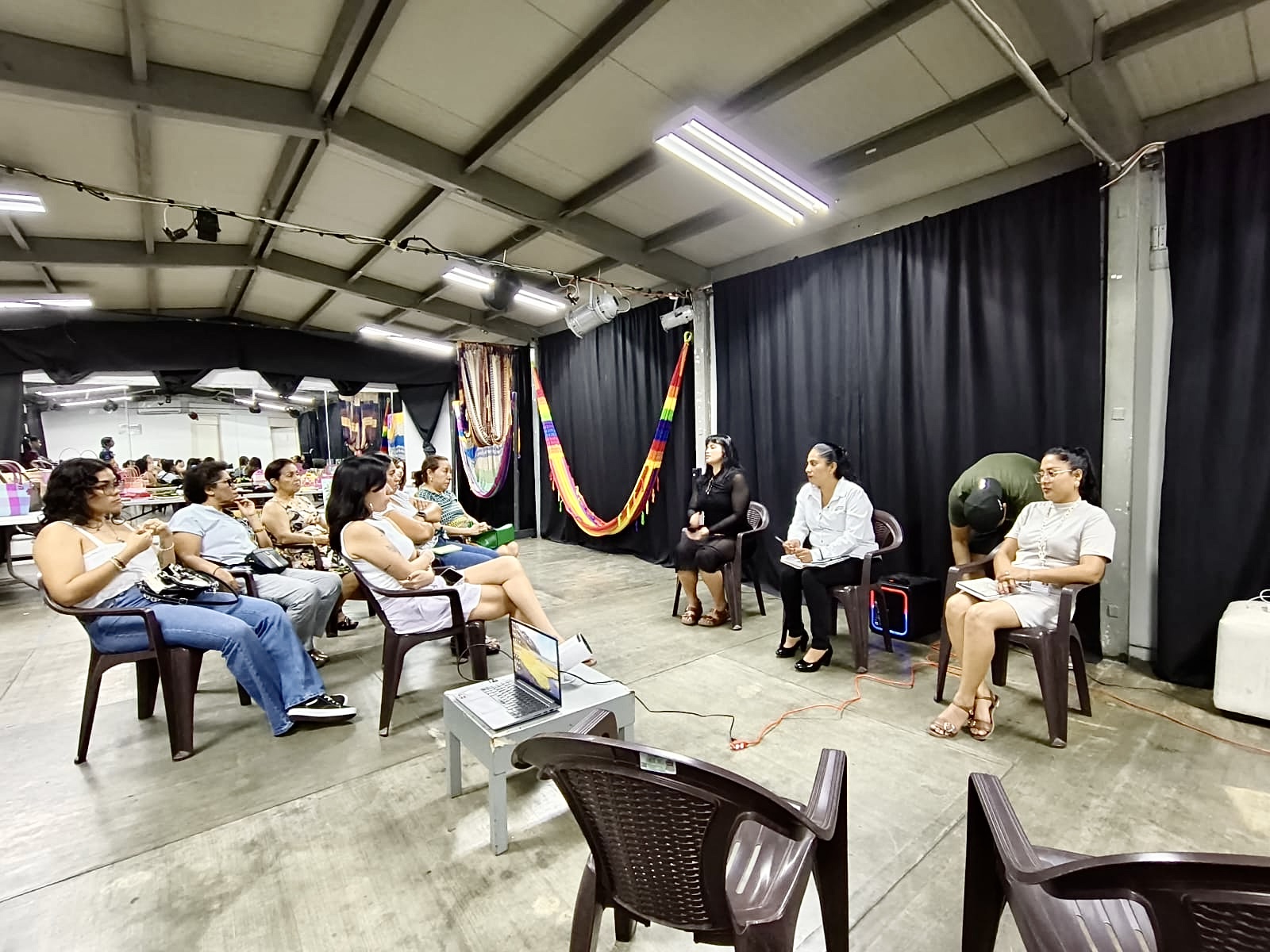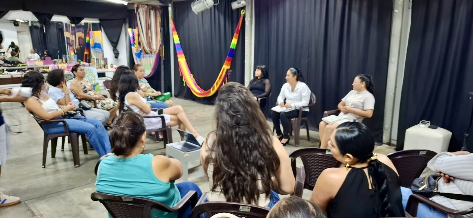 Como parte de las actividades, además de las participaciones culturales, se dispuso de una área para una expo-venta de los artículos que ellas hacen para vender y así tener dinero que envían a sus familiares, ya que algunas de ellas tienen hijos albergados en el DIF, así como hubo un conservatorio en el que participaron la coordinadora y la psicóloga del Reclusorio, que básicamente se encargan de reformarlas a través de terapias y activaciones dentro del reclusorio. A manera de interacción con el auditorio las preguntas principales hacia las funcionarias fue sobre cuáles son las experiencias de reinserción social y el papel del arte en sus vidas actuales, entre otras interesantes interrogantes más.