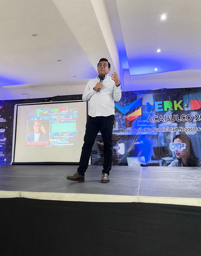 El segundo día de actividades de Merkado Acapulco mantuvo el dinamismo y la participación de jóvenes universitarios, empresarios y especialistas de distintos estados del país, el cual inició con la conferencia de Luis Bello, fundador de Bello Diseño, titulada “Cómo detectar oportunidades para reposicionar negocio y marca en mercados competitivos”, donde abordó la importancia del rediseño y la visión estratégica para mantener vigente una marca en escenarios cambiantes.